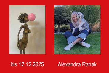 Alexandra Ranak stellt ihre Werke „Mit Patina und Pointe“ noch bis 12.12.2025 in der Galerie K zu den Öffnungszeiten (Di. u. Do. 15 – 17 Uhr, Fr. 10 – 12 Uhr oder auf Anfrage unter 03865-2202-282) aus.