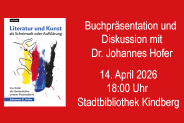 Dr. Johannes Hofer präsentiert sein neues Buch „Literatur und Kunst als Scheinwelt oder Aufklärung – Zur Kritik der Geisteskultur unserer Postmoderne“ am 14. April um 18.00 Uhr in der Stadtbibliothek Kindberg.